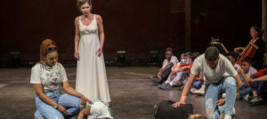 - Répétitions au plateau : une semaine de résidence au Théâtre rencontre de tous les participants, appropriation collective de l’espace scénique et du déroulé du spectacle avec les équipes du Théâtre