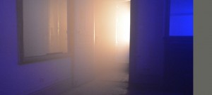 CB : L’œuvre est un collage par rapport au lieu. Je ne suis pas croyant mais ce que je désire faire, c’est une expérience de ce type : « une église en été, la porte est ouverte, une légère musique, un homme les bras levés et quelques